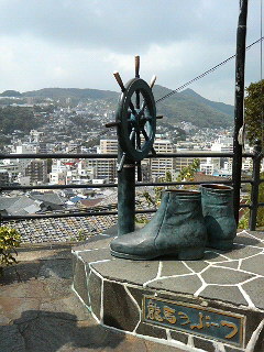 右)龍馬のぶーつ像。ここからの見晴らしは最高!